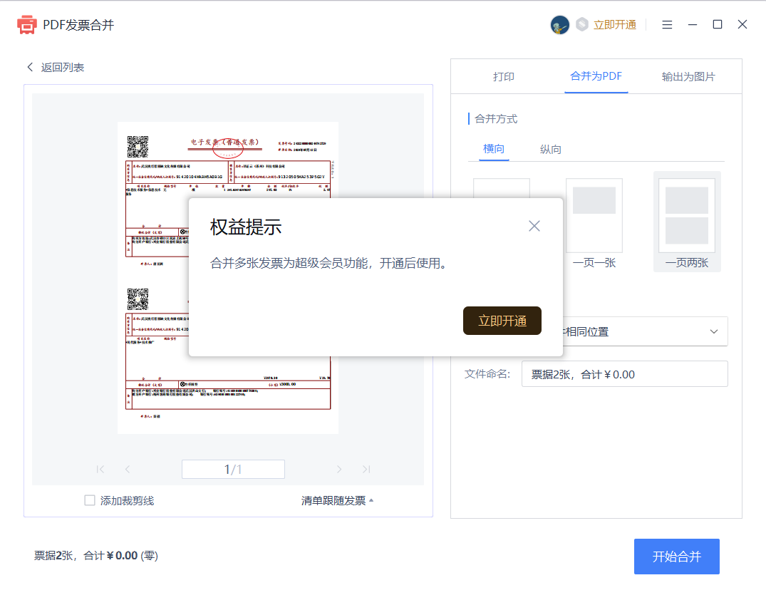 再给大家推荐一款专门将PDF数电票合并打印的软件,要知道,这个功能在某些国产办公软件中可是要会员专享,而且实际使用效果还不如这个。