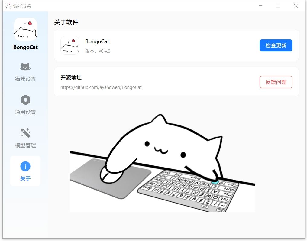 接下来给大家说说BongoCat v0.4.0版本更新了啥。首先,它在macOS上新增了个「通用设置>权限设置>输入监控权限」的配置项,方便大家根据自己的需求进行设置。而且,现在通过启动台再次点击就能打开偏好设置了,操作起来更方便啦。还有哦,它还添加了预设窗口尺寸,你可以轻松调整小猫窗口的大小,让它更适合你的屏幕。对了,它还换了新的托盘图标,看起来更精致了呢。修复方面,这个版本也做得很棒,解决了多显示器下鼠标移动异常的问题,还修复了猫猫窗口出现滚动条、靠左停靠后重启位置无法恢复、切换至标准模式后方向键未正确释放等一系列小问题。总之,现在用起来更顺手啦,赶紧去试试吧!