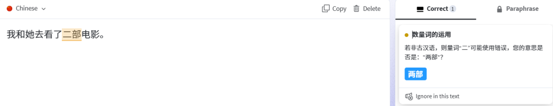 这是一款AI驱动的语法检查工具,支持中文、英文、西班牙语、德语、法语、荷兰等超过30种语言,深受多家企业信赖。