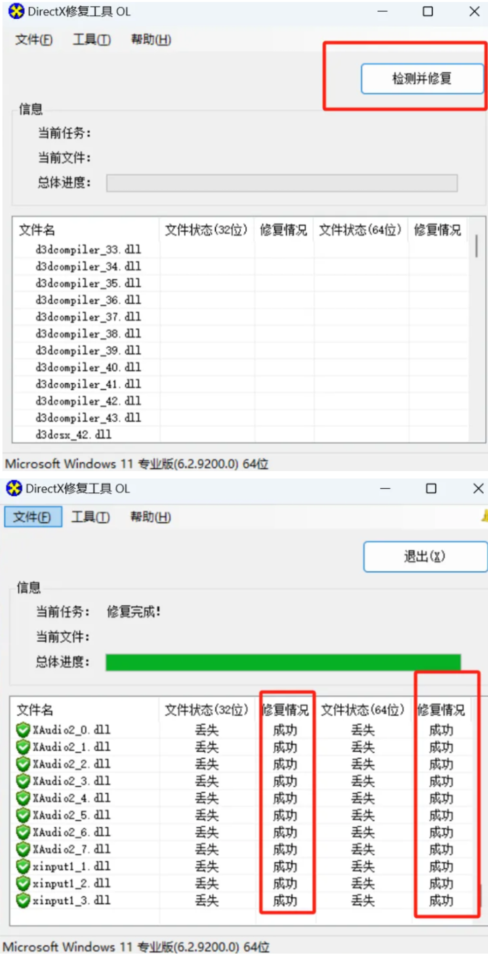 安装完成后,打开软件,点击【检测并修复】按钮。此时,软件会在短时间内对您的电脑系统进行全面扫描,快速定位所有电脑异常问题,涵盖dll文件异常和运行库问题。随后进行修复,这个过程极为迅速。