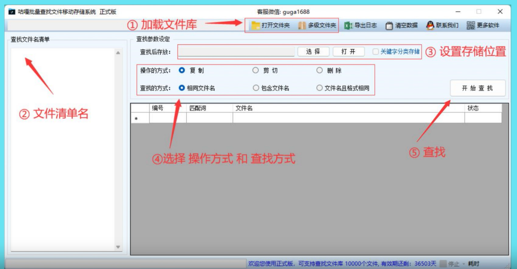 软件下载:「咕嘎批量文件名清单查找文件移动存储系统 .zip」