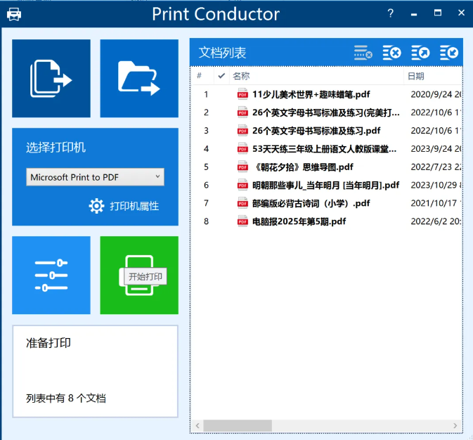 使用这款软件非常简单。只需将需要打印的所有文件添加到列表中,支持添加文件夹或者直接拖拽文件。