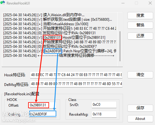 • 下载RevokeHookUI(这个软件只是使用WTL封装了一个GUI, 用于特征码搜索和DLL替换)