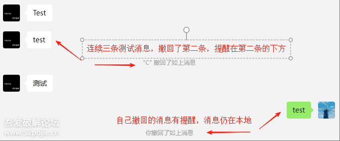 撤回的消息还是会在本地显示,但会在对方撤回的消息下面直接插入'撤回提醒',可以知道具体撤回的是哪条消息,解决了不知道撤回哪条消息的痛点。