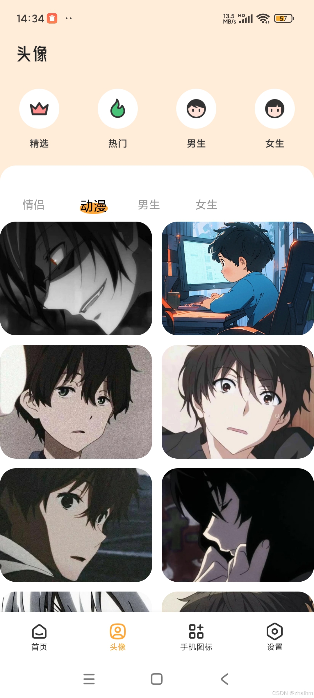 分类浏览:进入首页后,按分类(如“动漫”)筛选壁纸。