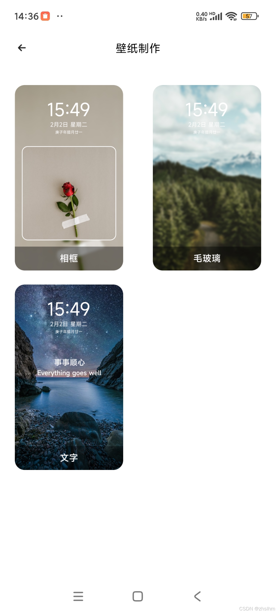 - 含相框式、毛玻璃式、文字式三种样式,每种又有卡通、简约、胶片三种风格,可制出精美壁纸。
