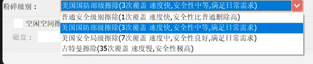 多级粉碎强度:提供从标准到军工级的多种粉碎等级选择,等级越高数据恢复难度越大