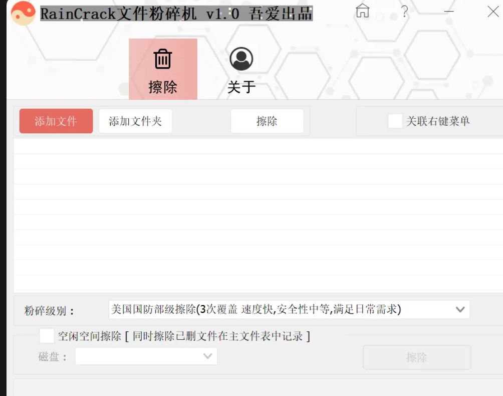 RainCrack是一款绿色免安装的专业文件粉碎工具,下载解压即可使用,无需复杂安装过程。这款工具专为需要彻底删除敏感文件的用户设计。