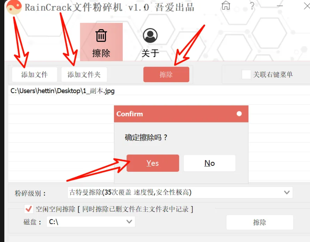 极简操作体验:支持拖放式操作,一键完成文件粉碎