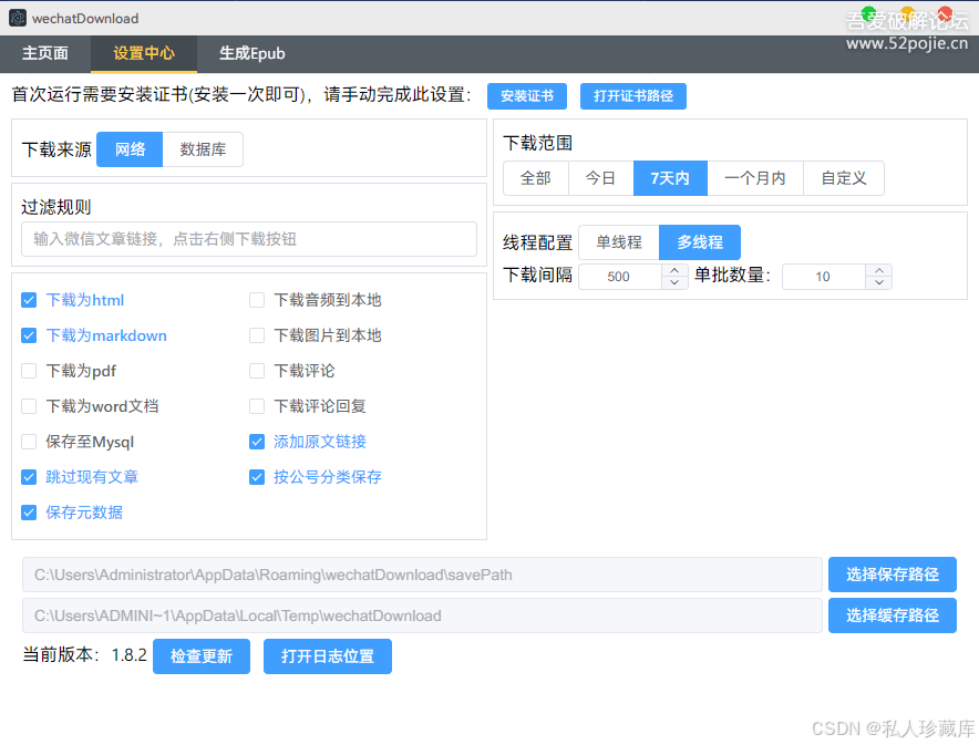 [Windows] 文章下载工具WeChatDownload_1.8.2