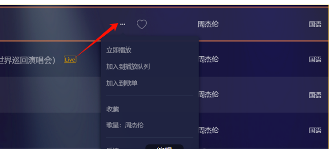 在歌曲列表中,点击歌曲旁的省略号(…),您可以选择立即播放或将其添加到播放队列中。