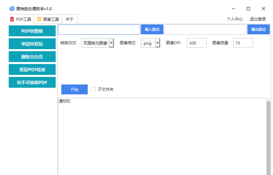 PDF转图像:批量将每个文件夹的图像合并成一个PDF,目前暂没有一张图一个PDF,后续会加入。