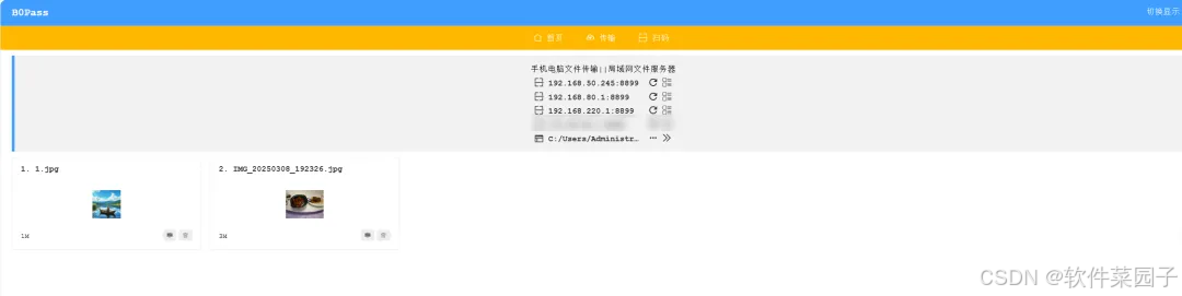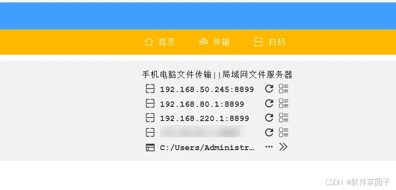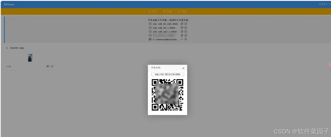 每个 IP 地址前面都有个扫码图标,点击后会跳出二维码,然后用手机扫二维码就行。这里要注意,你想传到哪个设备,就扫哪个码,像我家连的设备多,每次传文件都得仔细确认好地址。