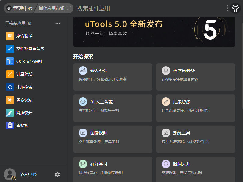 作为一名电脑爱好者,摆弄各种软件本身就是一种乐趣,为了提高工作效率,自然要去下载各种必备高效软件!然而,很多时候,下载了大量的软件之后,本以为是同类软件中最高效的了,但是功能上有时却容易混淆。今天给大家推荐一款超强的集合工具箱——uTools,这款工具现在 5.0 全新发布,带来了巨大的变化和功能改进。