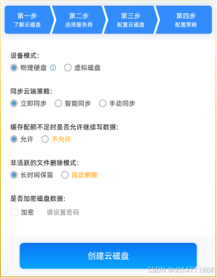● 配置云磁盘,这一步需要花费您一定的时间,请耐心填写相关的信息