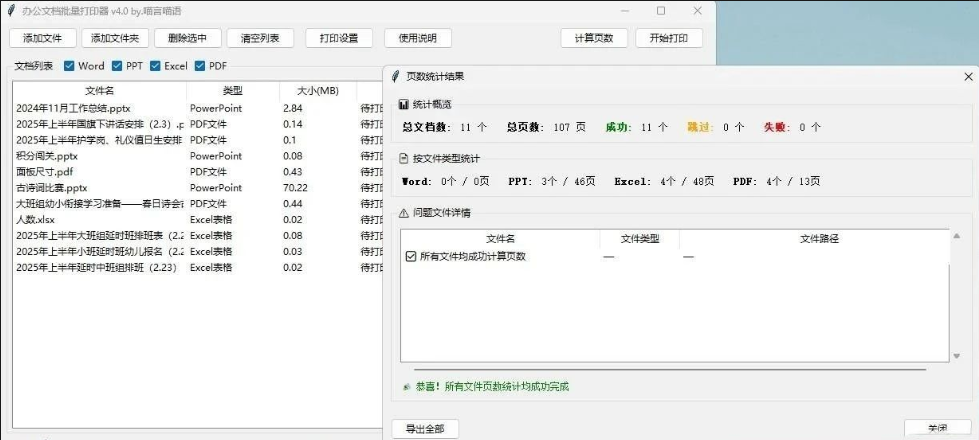 - 页数统计:自动计算总页数,预估打印成本(v3.0新增)