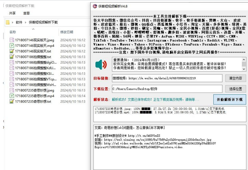 视频解析去水印工具(电脑版)—— 一键解析,无痕去水印