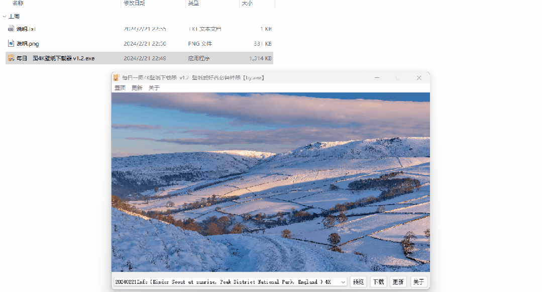 **下载地址:「每日一图4K壁纸下载器 v1.2.rar」