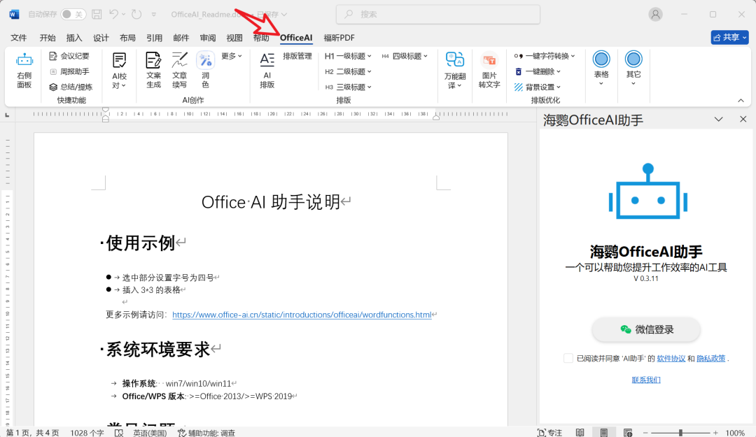 海鹦OfficeAI助手是一款专为Microsoft Office和WPS用户设计的智能AI办公工具,在AI时代下可以帮助打工人合理“偷懒”,大大提升工作效率!!