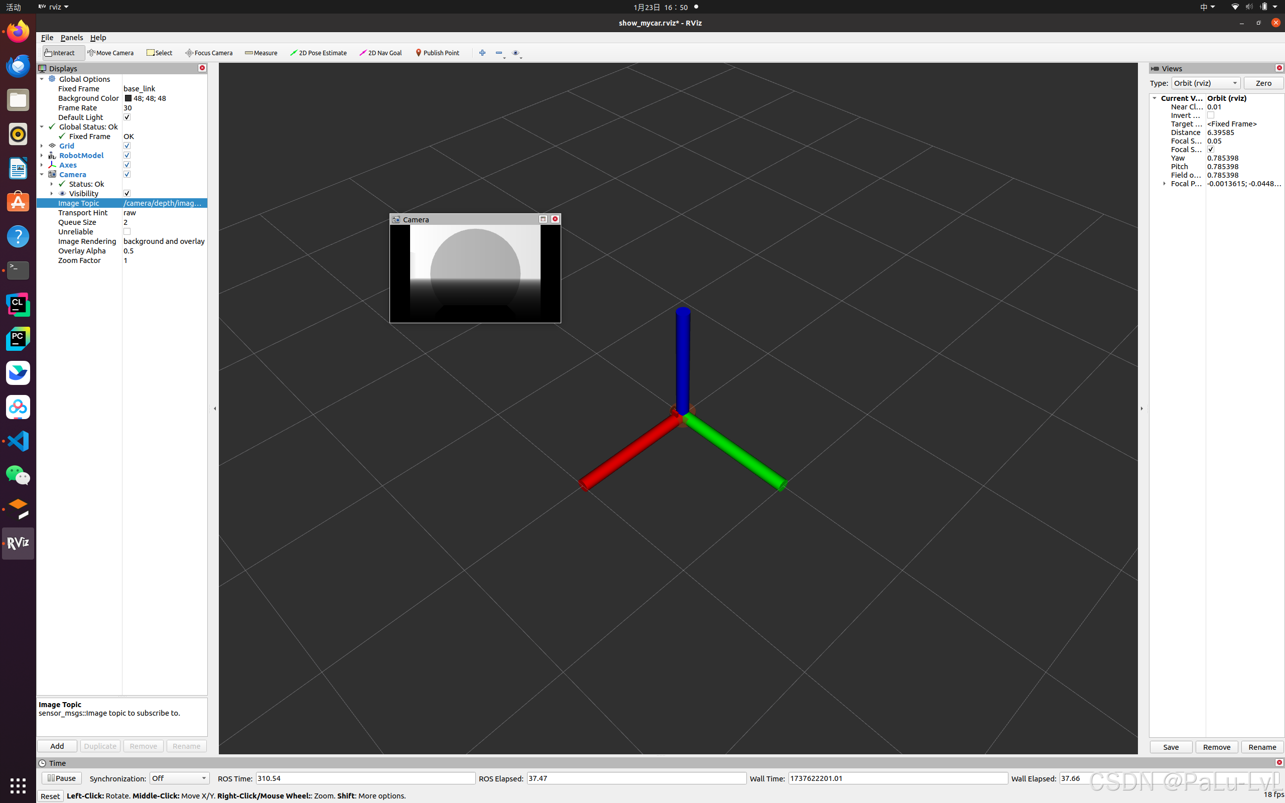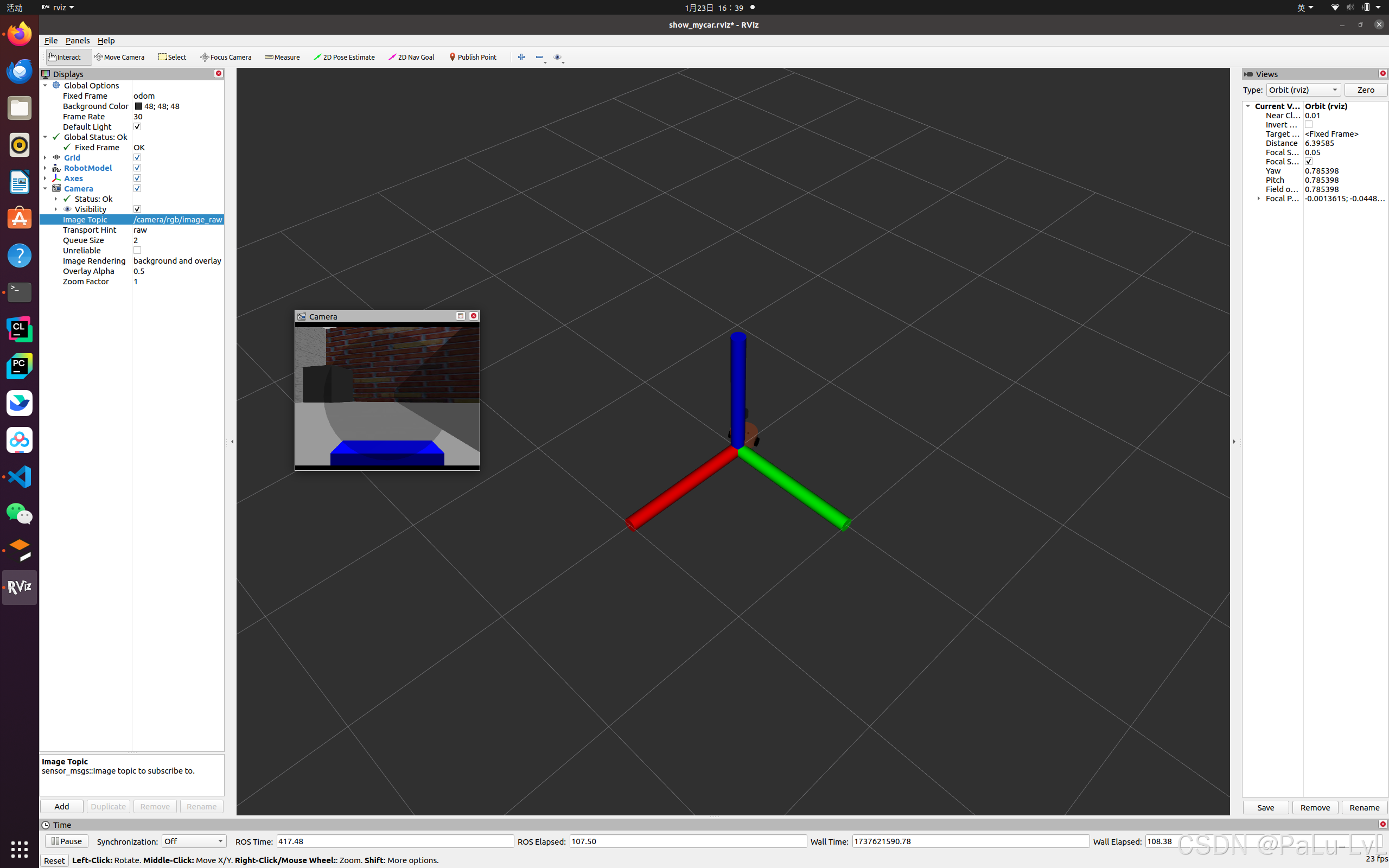 启动 Gazebo,使用 Rviz 显示摄像头信息。