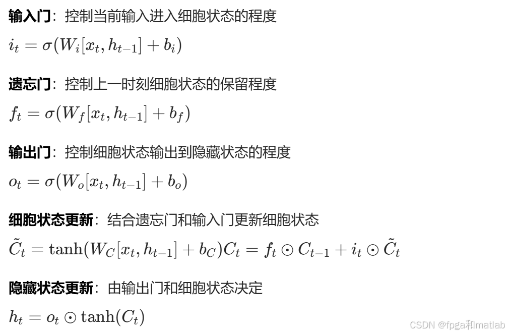 LSTM通过引入门控机制解决RNN的梯度消失问题,其核心组件包括: